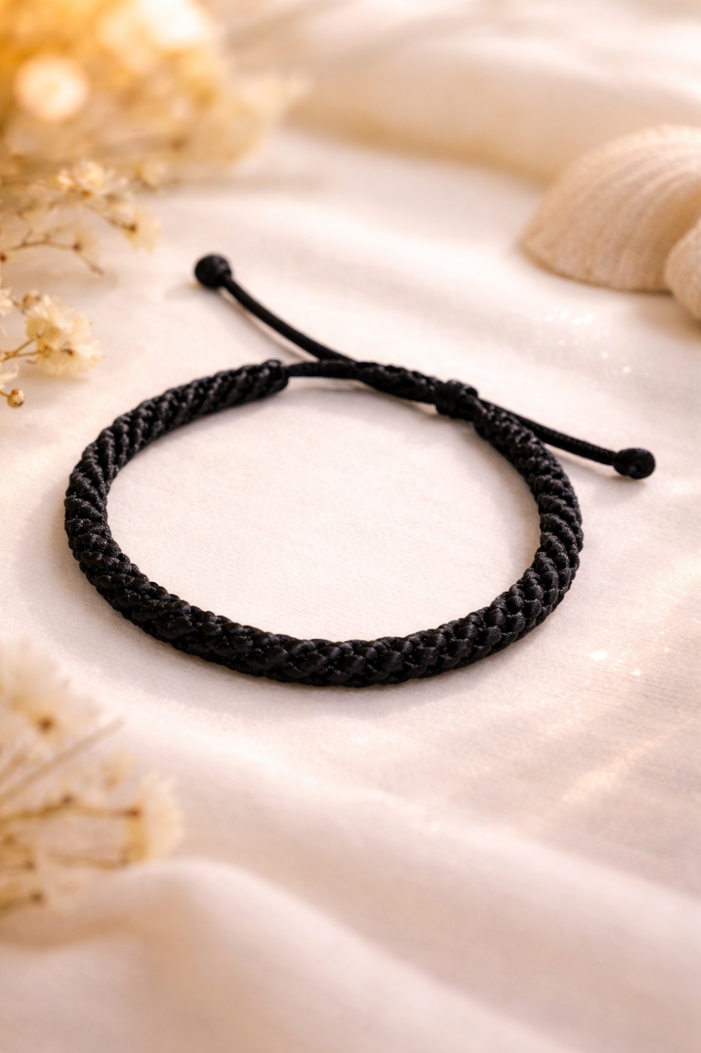 PULSERA DE HILO DE SEDA GRUESA, REGULABLE CON NUDO CORREDIZO.